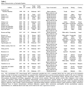 In terms of outcome characteristics, half of the included studies focused specifically on health promotion outcomes, with similar effects to those aimed at illness reduction. This fits the general assumption that mental health as a whole consists of both the absence of mental illness symptoms and the presence of positive mental health indicators (Keyes, 2013). In the last decade, there has been a shift in mental health care from focusing on symptom reduction to the improvement of positive mental health (Haeyen et al., 2018a;Orkibi, 2019;World Health Organization, 2018). Thisis consistent with the mounting evidence for the effectiveness of strength-based and positive psychological interventions (Bolier etal., 2013;Carr et al., 2021;Snyder et al., 2021), such as the positive psychodrama approach where positive psychological interventions are implemented experientially in action rather than only talking or writing (Orkibi, 2019).